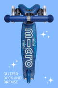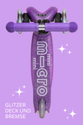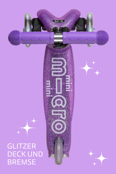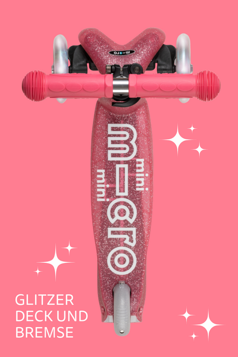 Entdecke eine Welt voller Wunder mit dem Mini Micro Deluxe Fairy Glitter LED. Das Glitzerdeck verleiht dem Kickboard einen wunderbaren Zauber und gibt deinem Kind das Gefühl, durch ein Märchen zu gleiten. Die LED-Rollen sind mit Glitzer gefüllt, leuchten, wenn sie sich in Bewegung setzen und sorgen für ein faszinierendes Schauspiel. Ein Anblick, der sowohl Kinder als auch Erwachsene verzaubern wird.