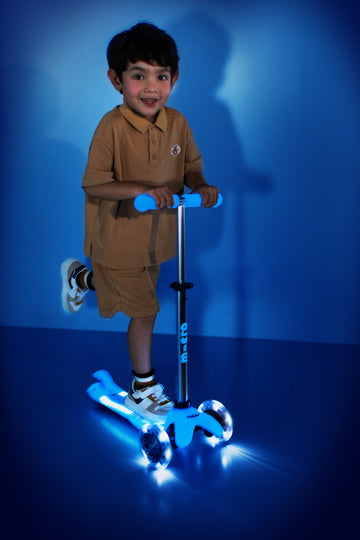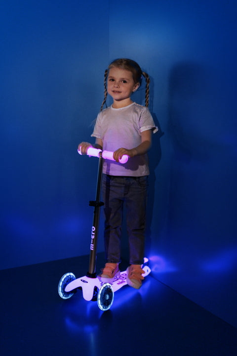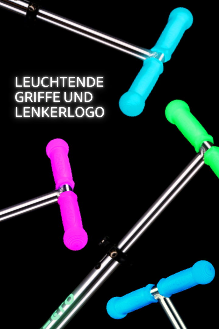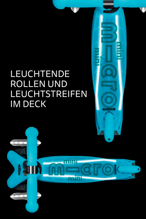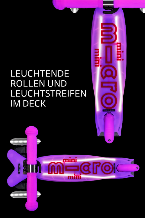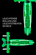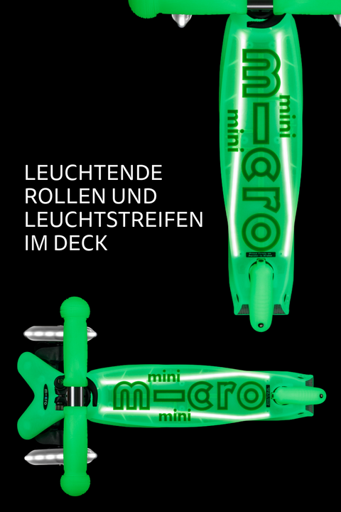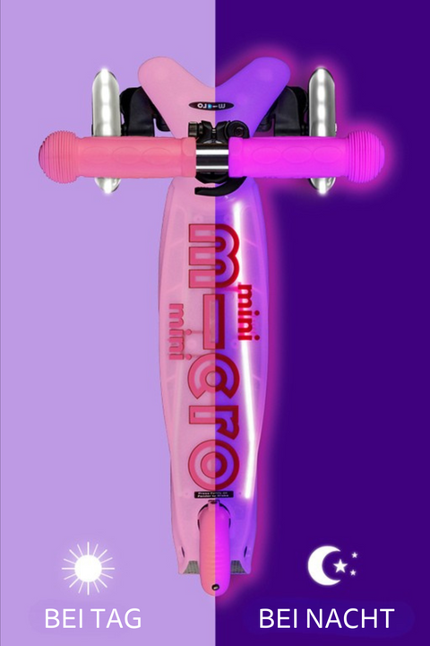 Spektakuläres Wunderwerk: Mit dem Mini Micro Deluxe Glow LED Plus werden Ausflüge deines Kindes im Freien zu einem unvergesslichen Erlebnis! Dieser außergewöhnliche Scooter verwandelt abendliche Fahrten in eine bezaubernde Lichtshow. Bei Einbruch der Dämmerung beginnen Trittbrett, Griffe, Bremse und Lenkerlogo des Kickboards zu leuchten und das ganze ohne Batterien. Durch Sonnenlicht oder künstliches UV-Licht aufgeladen, sorgen diese leuchtende Elemente für ein beeindruckendes Spektakel.