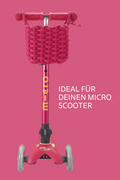 Dieser schöne und praktische Korb ist kompatibel mit allen Micro Scootern und macht jede Fahrt noch spannender. Ob dein Lieblingskuscheltier, das heiß geliebte Spielzeug oder kleine Schätze vom Weg, alles findet darin seinen Platz.