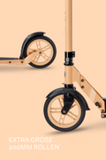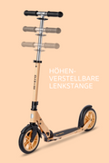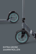 Das tiefe Trittbrett fördert eine ergonomische Haltung, wodurch auch längere Strecken mühelos bewältigt werden können. Mit seinem reifen, eleganten Design und seiner herausragenden Qualität ist dieser Scooter der perfekte Begleiter für den täglichen Arbeitsweg oder spannende Stadtabenteuer.